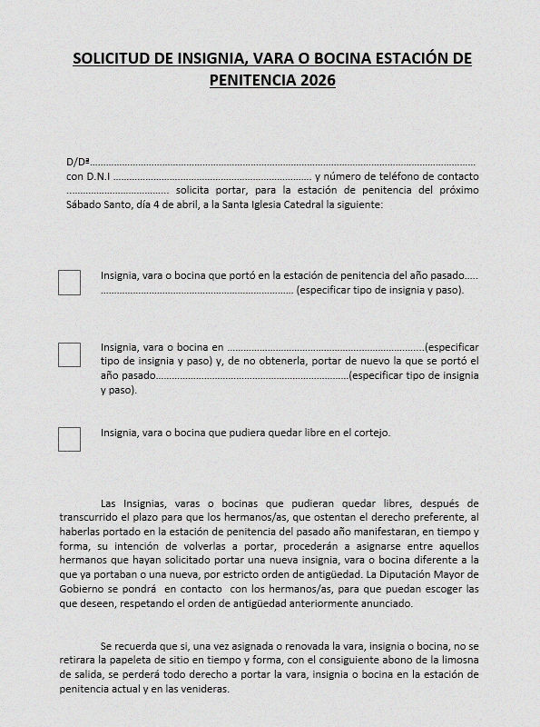 SOLICITUD DE INSIGNIA, VARA O BOCINA ESTACIÓN DE PENITENCIA 2026